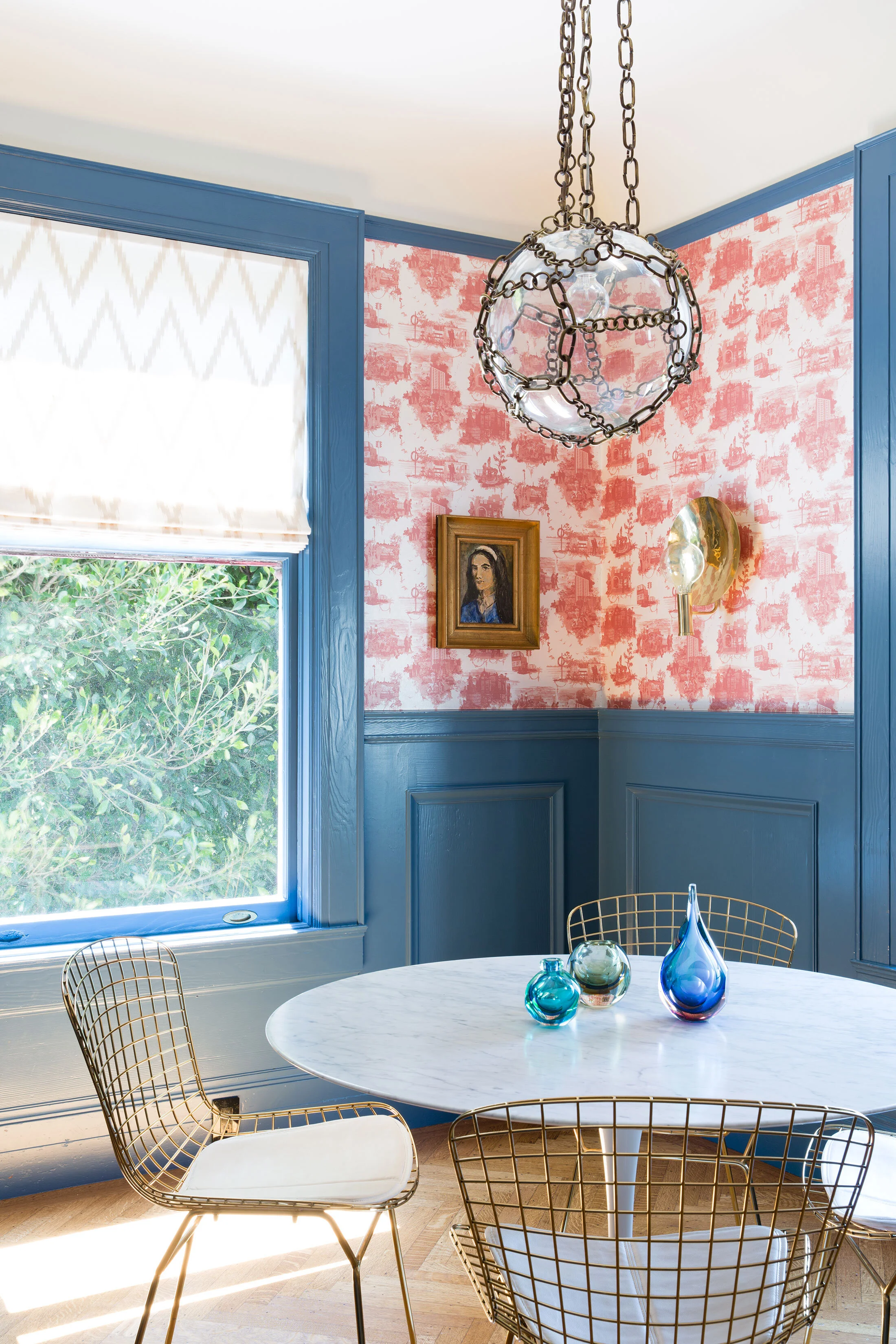Home to HSH Interiors’ own Holly Hollenbeck and her family, this historic Alamo Square residence was modernized to meet the demands of busy family life. Juxtaposing bold colors and bright patterns against the home’s original Edwardian features–ornate moldings, stained glass windows, high ceilings, and formal floor plan–Holly created a space that is both contemporary and classic. The result is a vibrant, whimsical family home that showcases vintage furnishings, custom paintings by Victor Reyes, and Holly’s treasured contemporary photography collection.